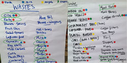 ![]() At the waste control plant, water is treated through multiple processes. FOG waste ultimately ends up in the nearby city landfill. | ![]() Crucial to the design process, community meetings create a discussion between city residents, the city, and the artists. The discussion revolves around food, waste infrastructure, and best practices. | ![]() Common food items are discussed and waste "recipe" cards are developed. |